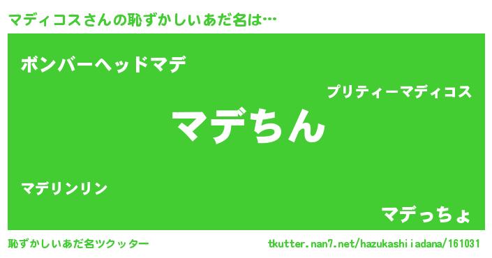 | 意味不明あだ名 | 『永久保存マディコス』 |