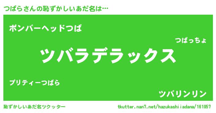 | 男性向けラノベタイトル風あだ名 | 『ツバラスレイヤー』『緋弾のツバラ』 |
