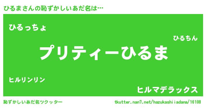 | 欧米人風あだ名 | 『ひるま・ステッグマイヤー』 |
