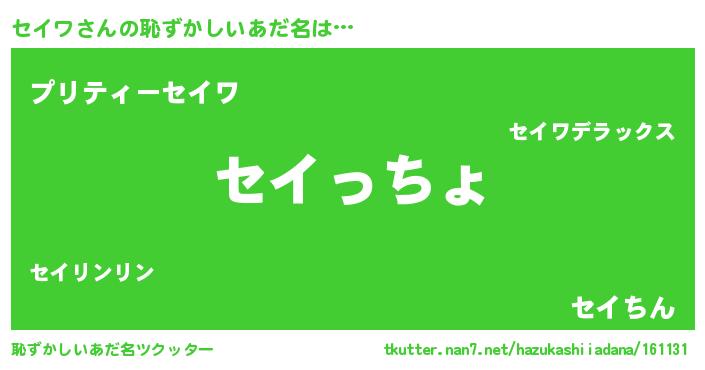 | 欧米人風あだ名 | 『ダレノガレセイワ』『セイワクリステル』 |