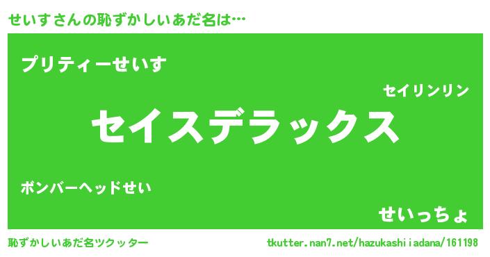 | 意味不明あだ名 | 『自称せいす』『めかぶ科せいす属』 |