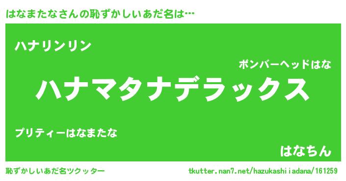 | 意味不明あだ名 | 『自称はなまたな』『永久保存はなまたな』 |