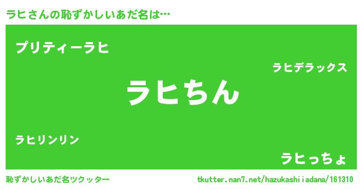 | 意味不明あだ名 | 『永久保存ラヒ』『エリンギ科ラヒ属』 |