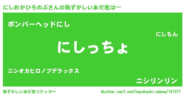 | 意味不明あだ名 | 『にしおかひろのぶフォーエバー』 |