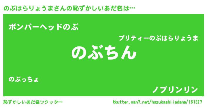 | 可愛いあだ名 | 『のぶはらりょうまママ』『のぶぷりん』 |