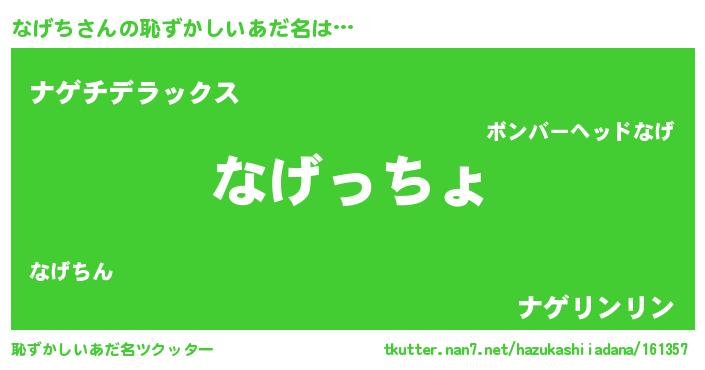 | ヘコむあだ名 | 『なまこ酢』『なげお』『なげち(笑)』 |
