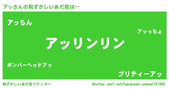 | 意味不明あだ名 | 『とにかく怪しいアッ』『永久保存アッ』 |