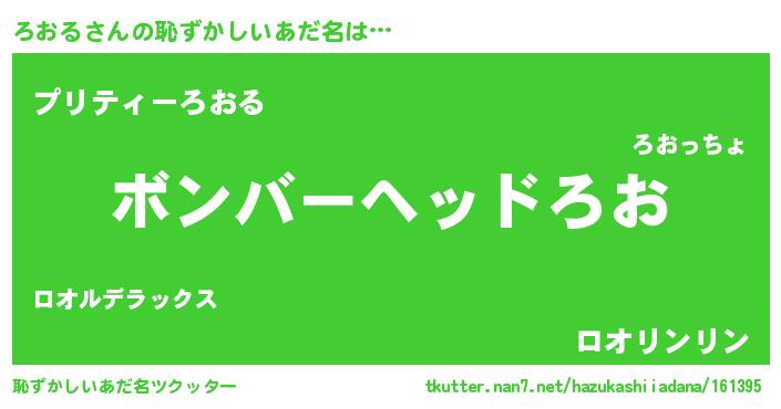| ヒーロー風カッコイイあだ名 | 『慈愛の使者ろおる』『仮面ロオダー』 |