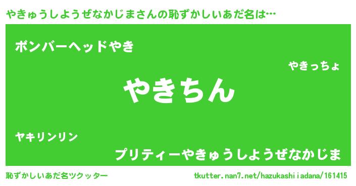 | ヒーロー風カッコイイあだ名 | 『ネオヤキュウシヨウゼナカジマ』 |