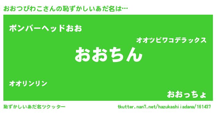 | ヒーロー風カッコイイあだ名 | 『ネオオオツビワコ』『仮面オオダー』 |