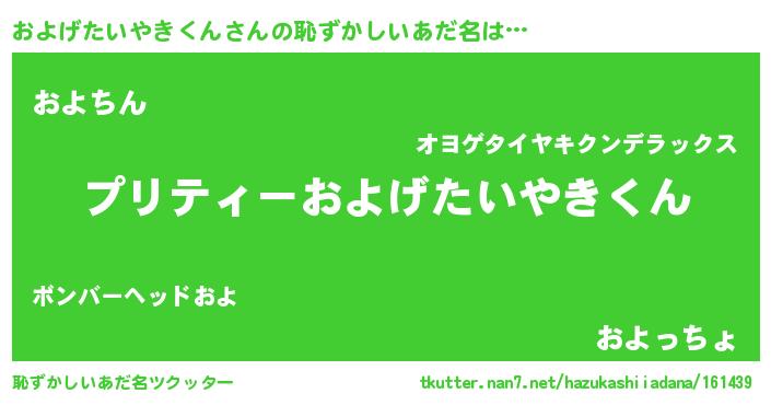 | ヘコむあだ名 | 『およにゅー』『およげたいやきくん(笑)』 |