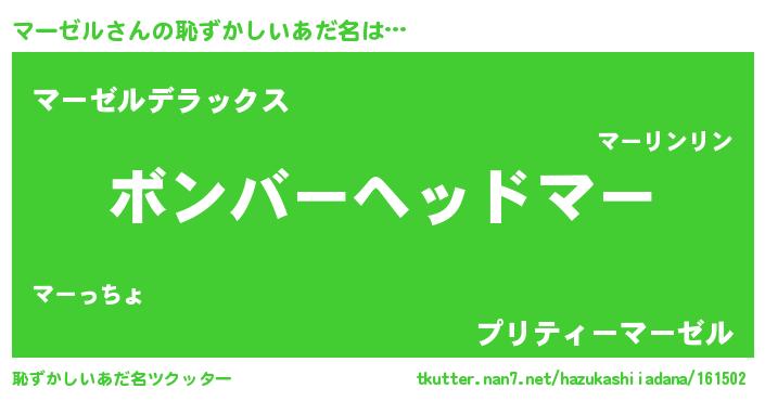 | 意味不明あだ名 | 『住所不定無職マーゼル(53歳)』 |