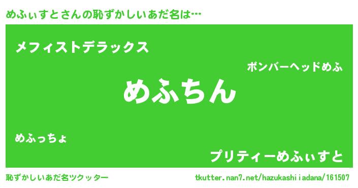 | 男性向けラノベタイトル風あだ名 | 『緋弾のメフィスト』『めふぃすとの憂鬱』 |