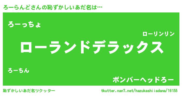 | 男性向けラノベタイトル風あだ名 | 『Re:ろーらんどから始める異世界生活』 |