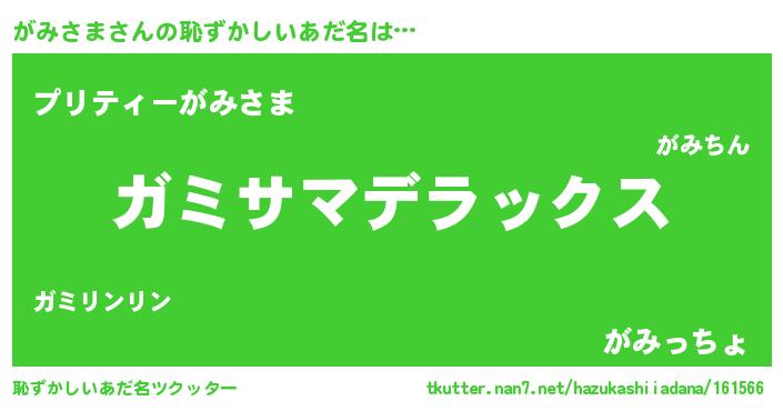 | ヘコむあだ名 | 『がみっふぃ~』『つくし』『がみお』 |