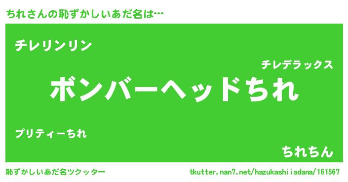 | 女子向けラノベタイトル風あだ名 | 『死神ちれの再婚』『ちれ様がみてる』 |