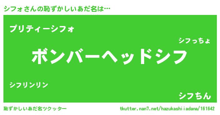 | ヘコむあだ名 | 『シフっふぃ~』『シフォ(笑)』 |