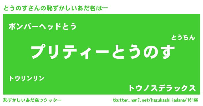 | 意味不明あだ名 | 『しいたけ科とうのす属』『自称とうのす』 |