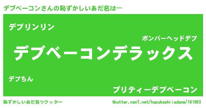 | 男性向けラノベタイトル風あだ名 | 『デブベーコンスレイヤー』 |