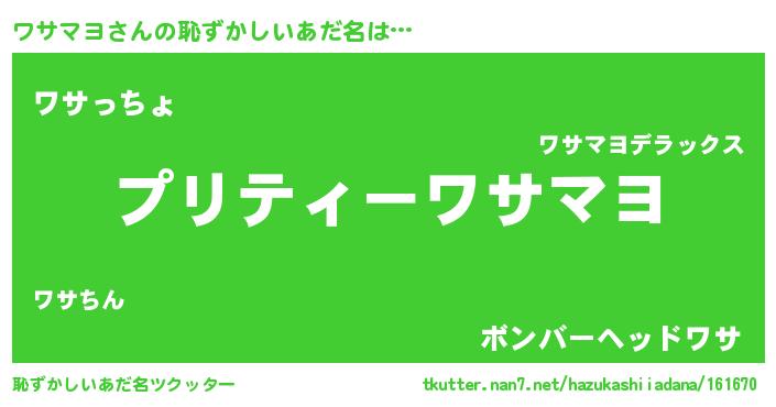 | ポケモン風あだ名 | 『ワサチュウ』『ワサマダネ』 |