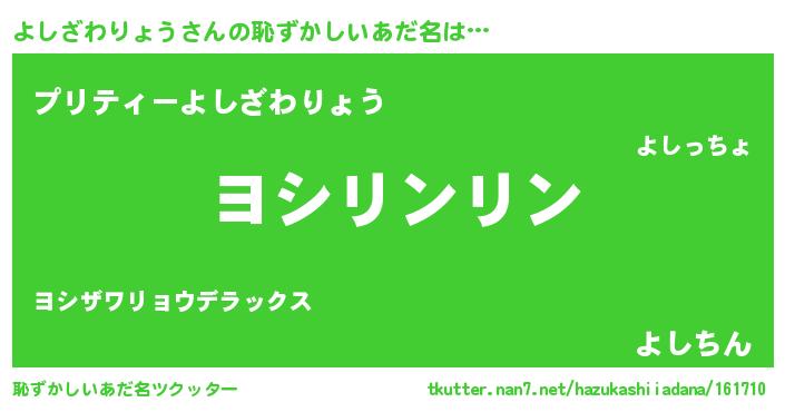 | 男性向けラノベタイトル風あだ名 | 『よしざわりょうの嫁は女の子じゃないと思った?』 |