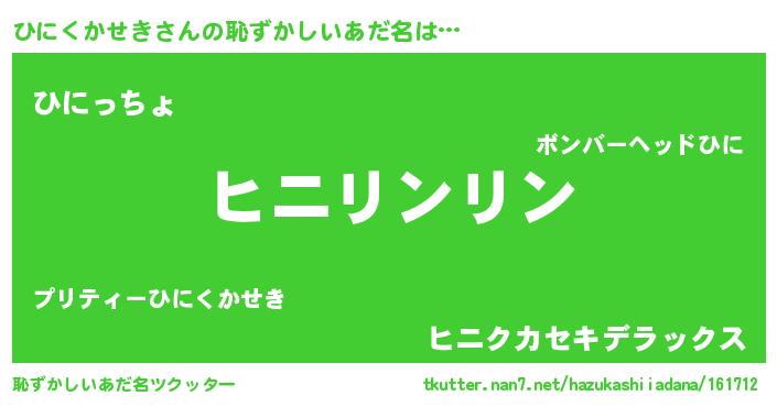 | ヒーロー風カッコイイあだ名 | 『暗黒騎士ヒニ』『仮面ヒニダー』 |