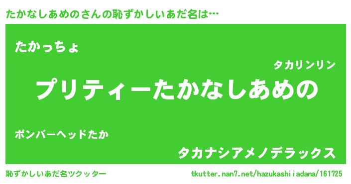 | 胡散臭い通販商品みたいなあだ名 | 『億万長者になれるブレスレット…その名も「たかなしあめの」』 |