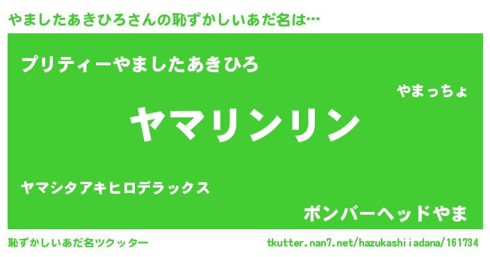 | 意味不明あだ名 | 『とにかく怪しいやましたあきひろ』 |