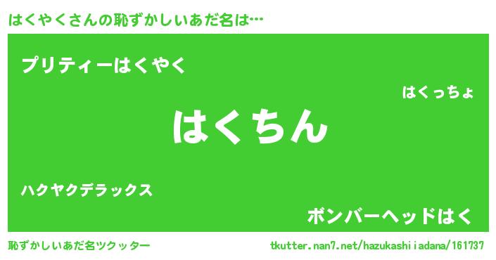 | 男性向けラノベタイトル風あだ名 | 『はくやくという概念が存在しない退屈な世界 』 |