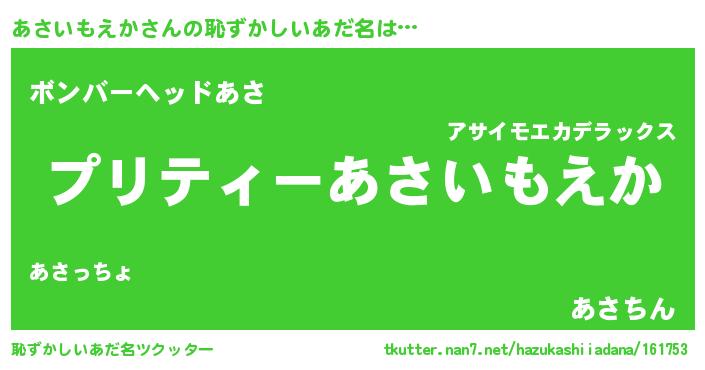 | 胡散臭い通販商品みたいなあだ名 | 『億万長者になれるブレスレット…その名も「あさいもえか」』 |
