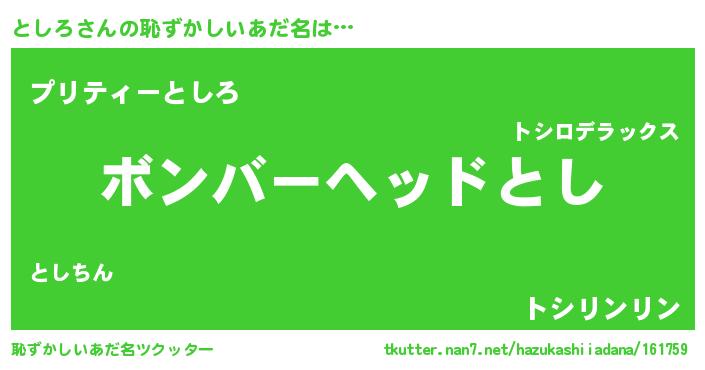 | ヒーロー風カッコイイあだ名 | 『慈愛の使者としろ』『スーパートシロ』 |