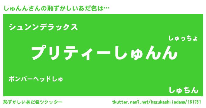 | 胡散臭い通販商品みたいなあだ名 | 『億万長者になれるブレスレット…その名も「しゅんん」』 |