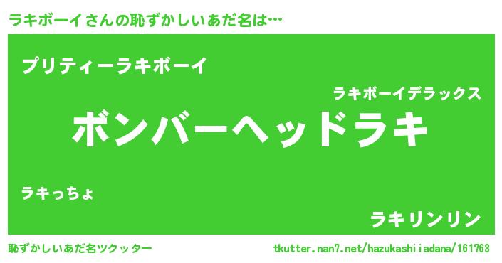 | ヒーロー風カッコイイあだ名 | 『仮面ラキダー』『愛の使者ラキボーイ』 |