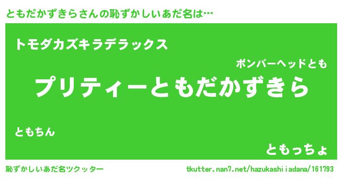 | 胡散臭い通販商品みたいなあだ名 | 『億万長者になれる霊験あらたかなお札…その名も「ともだかずきら」』 |