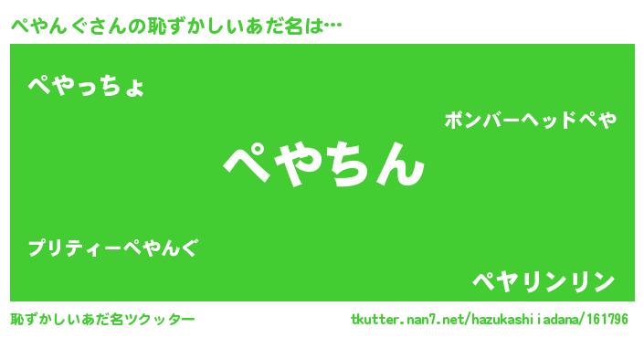 | 意味不明あだ名 | 『永久保存ぺやんぐ』 |