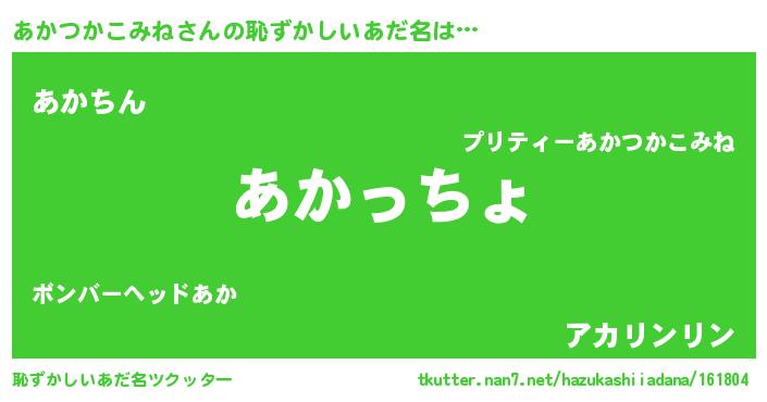 | 男性向けラノベタイトル風あだ名 | 『アカツカコミネスレイヤー』 |