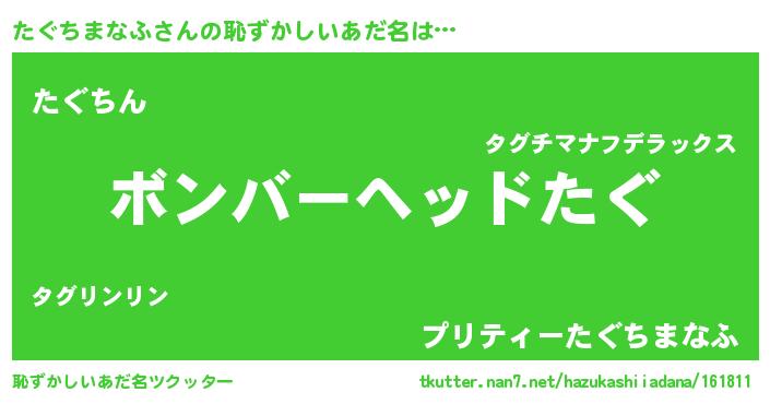 | ヘコむあだ名 | 『たぐちまなふ(笑)』『たぐもー』 |