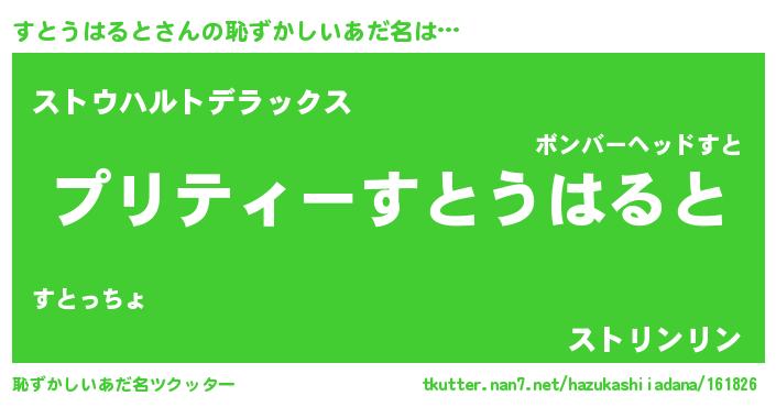 | 男性向けラノベタイトル風あだ名 | 『すとうはるとの憂鬱』 |