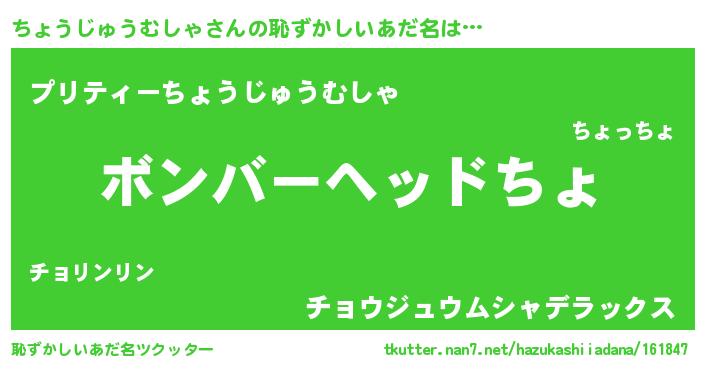 | ヒーロー風カッコイイあだ名 | 『正義の使者ちょうじゅうむしゃ』 |