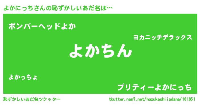 | 意味不明あだ名 | 『永久保存よかにっち』『自称よかにっち』 |