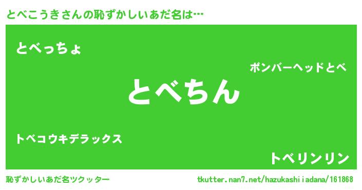 | ヒーロー風カッコイイあだ名 | 『ネオトベコウキ』『仮面トベダー』 |