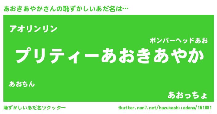 | ポケモン風あだ名 | 『アオチュウ』『ヒアオキアヤカ』 |