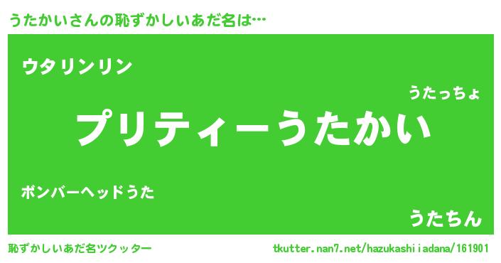 | 意味不明あだ名 | 『ペロリンうたかい』『永久保存うたかい』 |