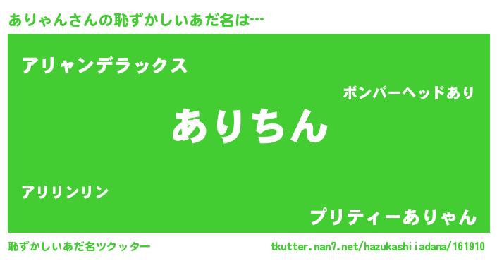 | 料理風あだ名 | 『ありゃんごはん』 |