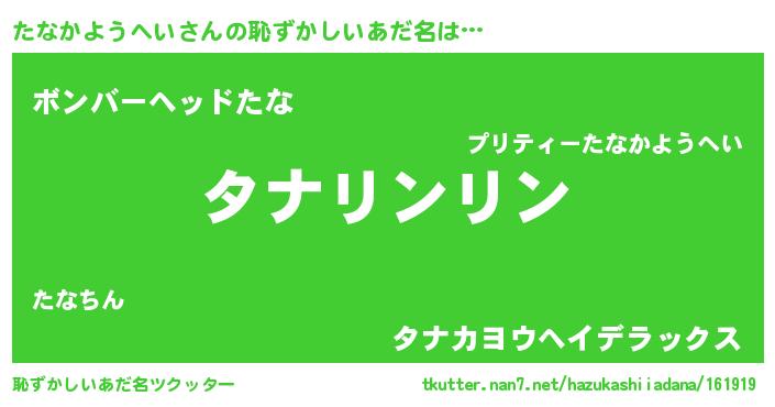 | ヘコむあだ名 | 『たなっちょ』『たなもー』 |