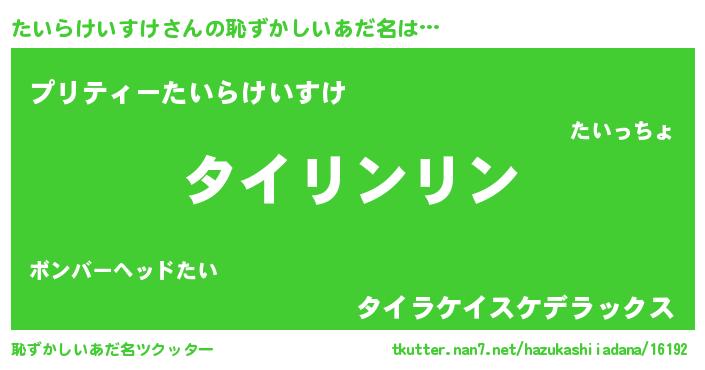 | ヘコむあだ名 | 『たいぷりん』『たいにー』 |