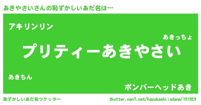 | ヒーロー風カッコイイあだ名 | 『スーパーアキヤサイ』『幻影騎士アキ』 |