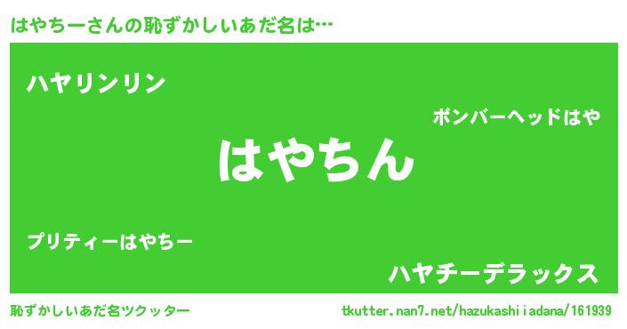 | ヘコむあだ名 | 『はやちー(爆)』『はやっちょ』 |