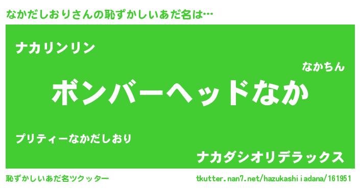 | ヘコむあだ名 | 『なかっ子』『なかだしおり(爆)』 |