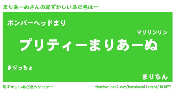| ヘコむあだ名 | 『まりもー』『まりあーぬ(爆)』 |